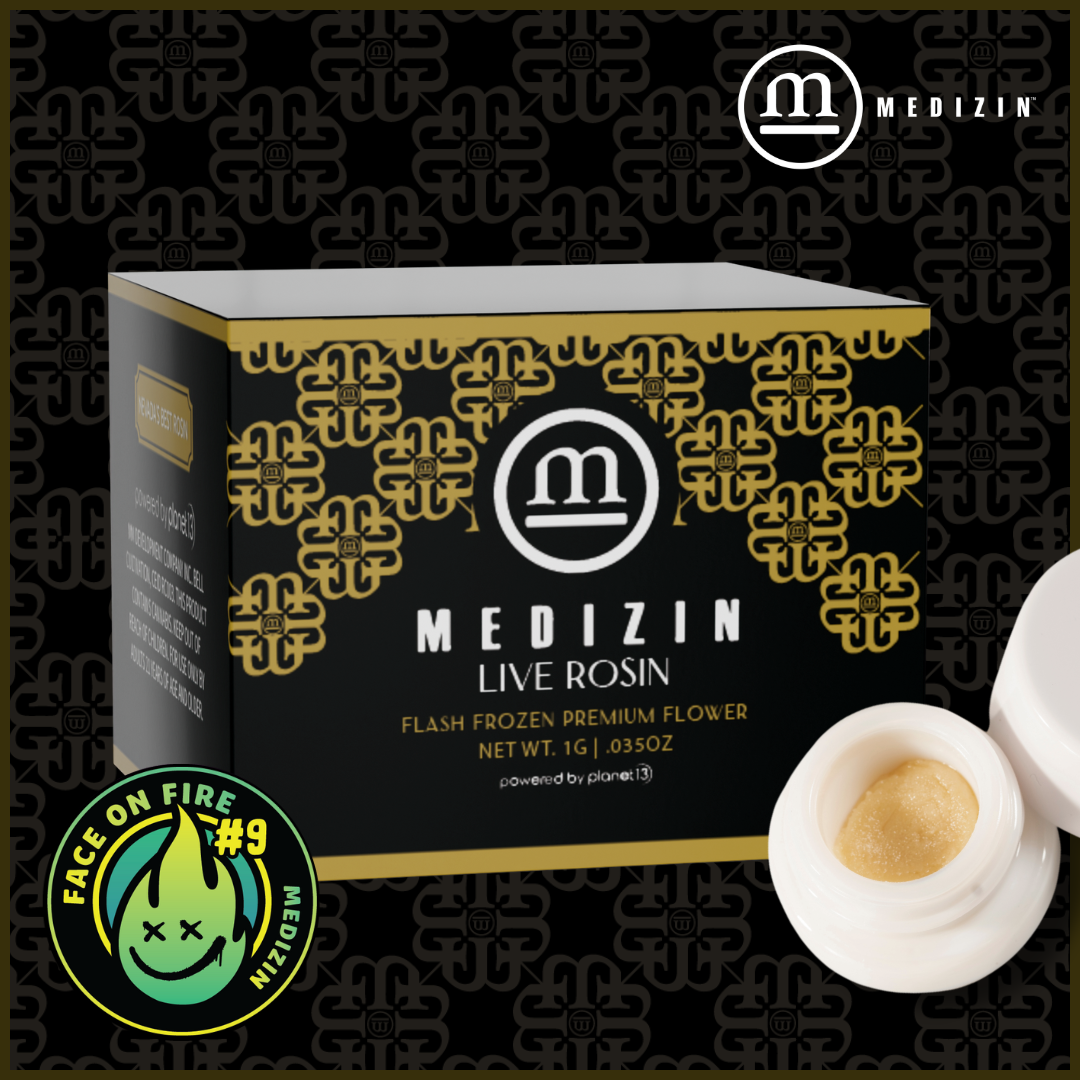 Face on Fire #9 Live Rosin is Crafted from Face on Fire #9, a potent cross of Wifi OG and Face Off OG, this live rosin is produced from fresh plant material that is flash frozen at harvest to preserve the strain’s full terpene and cannabinoid expression. The frozen flower is gently washed into ice water hash, then carefully pressed to create a clean, solventless rosin that captures the cultivar at its peak. Bred by Archive Seeds and selected and cultivated by Medizin Las Vegas, Face on Fire #9 delivers bold aromatics of earthy pine and skunky funk layered with bright lemon zest and fuel. The flavor is rich and robust, blending classic OG earth with citrus and gas on a smooth, lingering finish. Powerful yet balanced, Face on Fire #9 Live Rosin offers an uplifting cerebral onset that settles into deep, body-focused relaxation—ideal for unwinding at the end of the day.
