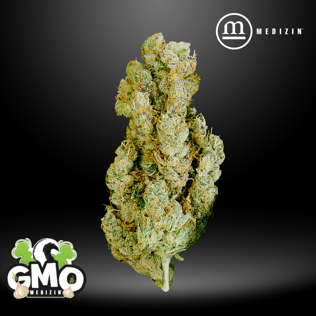 GMO, also known as Garlic Cookies, is an indica-dominant hybrid known for its unmistakable character and bold sensory profile. This cultivar delivers a pungent aroma layered with savory garlic, diesel fuel, and deep earthy undertones that carry through to the flavor. The experience is deeply relaxing, often accompanied by a calming sense of tranquility and a noticeable boost in appetite, making GMO a go-to choice for unwinding and easing into a mellow state of mind.