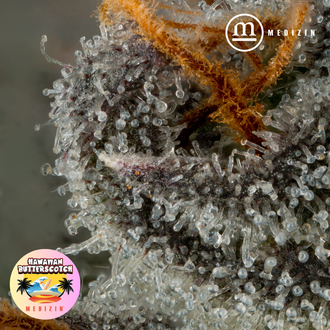 Hawaiian Butterscotch is a rare, clone-only selection from a standout batch of Caramel seeds, combining Chem91 with Butterscotch Hawaiian for a uniquely flavorful and balanced experience. Ocimene-dominant, this cultivar releases an enticing aroma of creamy butterscotch and tropical piña colada, offering a sweet and refreshing bouquet that lingers in the air. Versatile in its effects, Hawaiian Butterscotch is well-suited for both daytime productivity and evening relaxation. Its heavy resin production and aromatic profile make it a standout for both connoisseurs and extractors seeking something special.