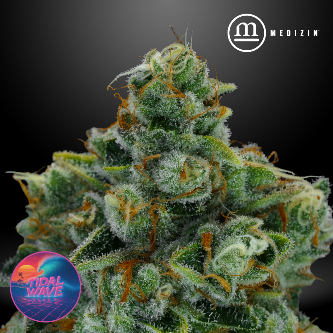 Tidal Wave surges with depth and character, the result of a powerful union between Malibu Pure Kush and Dosidos. Bred by Archive Seed Bank and pheno-hunted by the expert team at Medizin Las Vegas, this cultivar offers a bold expression of its lineage—where laid-back coastal kush meets rich, doughy funk. The aroma is rich and layered—earthy kush and creamy vanilla swirl with hints of sweet gas and pine. On the palate, expect smooth, cookie-dough-like flavors balanced by herbal and slightly gassy undertones. With a presence that’s both calming and immersive, Tidal Wave rolls in slow and steady—leaving a lasting impression.